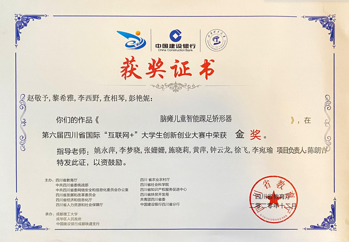 第六届四川省国际“互联网+”大学生创业大赛 金奖