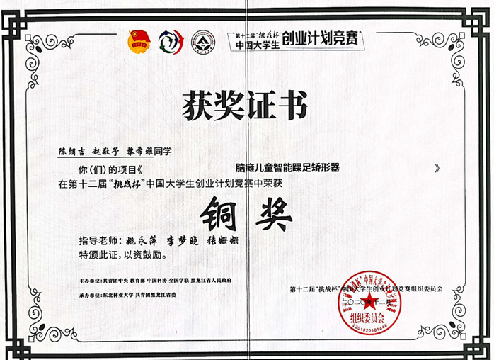 第十二届“挑战杯”中国大学生创业计划竞赛 铜奖