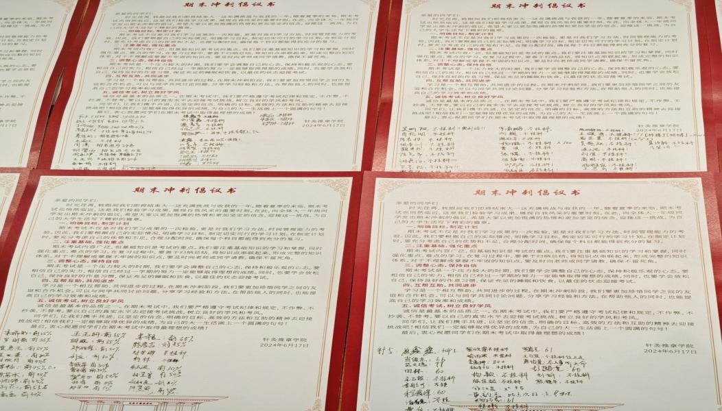 会后同学们纷纷在期末冲刺倡议书上签字,本次大会作为学院优良学风建设及考风形成,以及习惯养成计划的重要环节,帮助同学们明确了自身目标,坚定了备考信心,激发了学习热情,积极应对即将到来的期末考试。