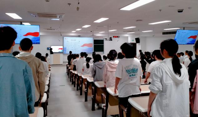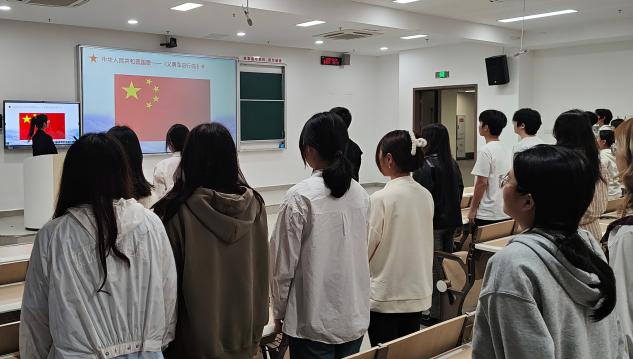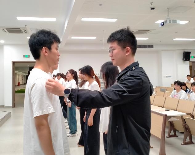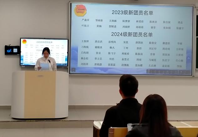 仪式在雄壮的国歌声中拉开序幕。主持人阐释入团仪式意义后,学院主席团成员杨鑫源宣读新发展团员名单,此次共计124名同学加入中国共产主义青年团。随后,辛培宇老师与优秀团员代表为新团员佩戴团徽,一枚枚闪耀的团徽不仅是身份的象征,更承载着青春使命的启航。