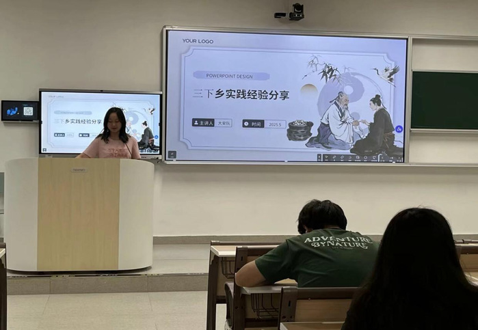 分享会现场座无虚席,热烈氛围扑面而来。同学们或手持笔记本,认真记录分享要点;或举起手机,定格 PPT 关键内容,展现出对社会实践的高度期待与参与热情,彰显出青年学子积极投身实践的蓬勃朝气。