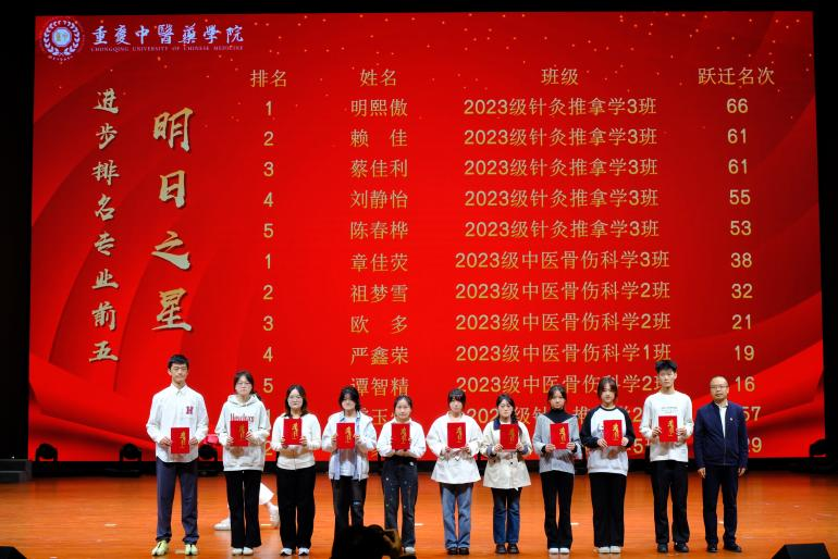 本次表彰大会的成功举办,进一步凝聚了榜样力量,营造了“比、学、赶、帮、超” 的学习氛围,也为学院学风建设注入了新的活力。未来,针灸推拿学院、骨伤学院将持续深耕学风建设,着力培养更多德智体美劳全面发展的高素质中医药人才,为传承精华、守正创新的中医药事业发展添砖加瓦