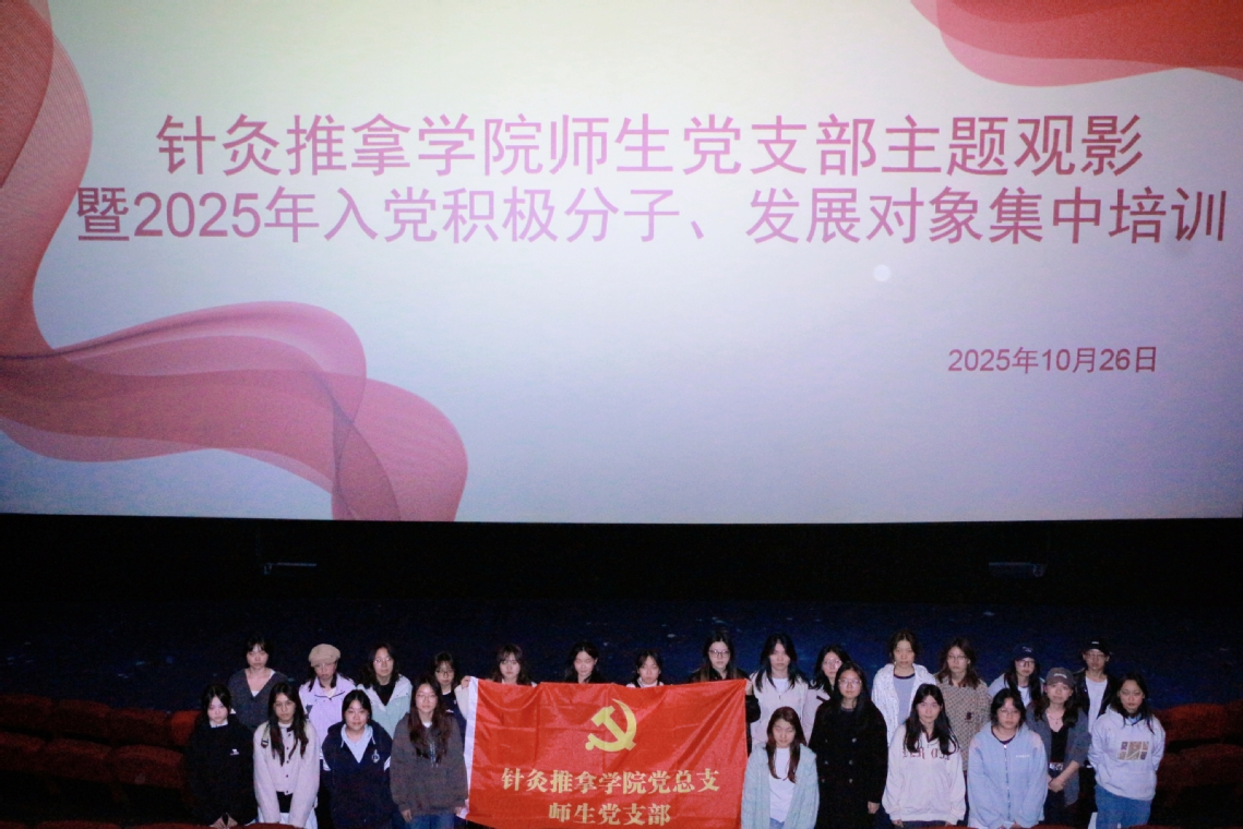 培训伊始,针灸推拿学院党总支于2025年10月26日组织师生党支部全体党员及本次入党积极分子、发展对象共同观看红色主题影片《志愿军:浴血和平》。影片以震撼的画面、感人的情节,生动再现了志愿军将士在艰苦卓绝的战场上,为了国家安宁、人民幸福,不畏强敌、浴血奋战的英雄事迹。观影过程中,全体学员神情凝重,被志愿军将士们舍生忘死的革命精神和家国情怀深深打动。大家纷纷表示,将以志愿军英雄为榜样,把满腔的爱国热情转化为勤奋学习、努力工作的强大动力,以实际行动传承红色基因,赓续革命血脉。