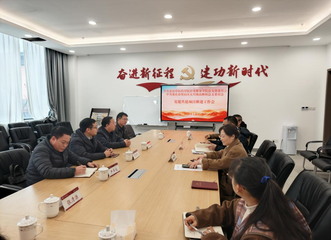 2026 年 1 月 15 日,中共重庆中医药学院针灸推拿学院总支部委员会与重庆市璧山区大兴镇高桥村总支部委员会联合召开党建共建项目推进会。本次会议以菲油果特色产业发展为核心切入点,成功搭建起校地协同助农新平台,进一步推动党建优势转化为乡村产业振兴的强劲动能。