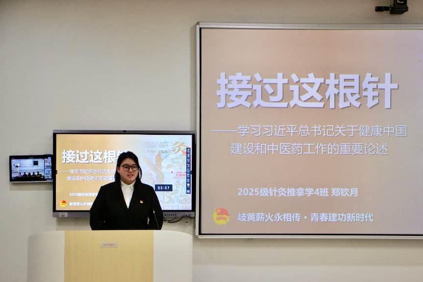 中医药薪火代代相传,青春奋进恰逢其时。针灸推拿学院、骨伤学院将以此次大赛为契机,持续创新思想政治教育形式,深化中医药文化与团课教育的有机融合,引导广大青年学子在专业学习中精进技能,在实践探索中坚定前行。以青春之我、奋斗之我,为中医药事业的传承、创新与发展注入青春活力,在新时代新征程上谱写中医药青年的崭新篇章。