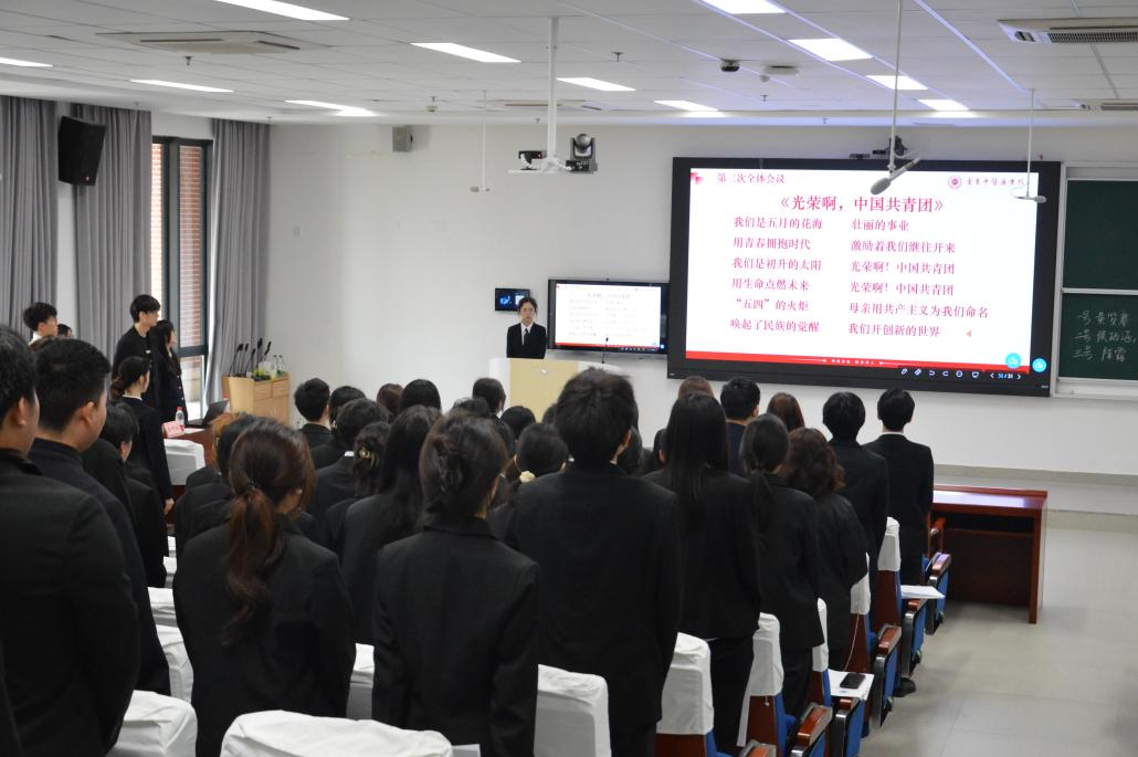 在庄严的国歌声中重庆中医药学院中西医结合学院第二次学生代表大会第一次全体会议正式开幕。共青团重庆中医药学院团委书记岳慧鹏,重庆中医药学院中西医结合学院党总支书记冯雅蕾,中西医结合学院团总支书记李巧玲及辅导员出席会议。会议由院学生会主席团成员赵依婷主持。
