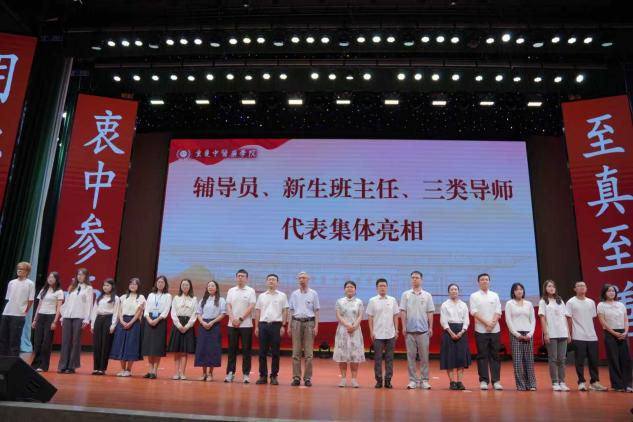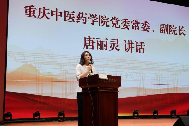 最后,唐丽灵副院长代表学校为新生送上了关怀与期望,她讲到重庆中医药学院虽然是一所年轻的高校,但有着悠久的办学历史,学校立足立德树人根本任务,如今已建立了完备的本硕博人才培养体系,希望新生以重中医为起点,不断攀登高峰。她从“立心、立学、立身”三个维度对全体新生提出了期望:一要坚守从医初心,筑牢理想信念根基;二要践行融通创新,淬炼过硬专业本领;三要促进全面发展,锻造高尚品德修为。勉励新生矢志成长为“学贯中西、大医精诚”的高素质复合型医学人才。