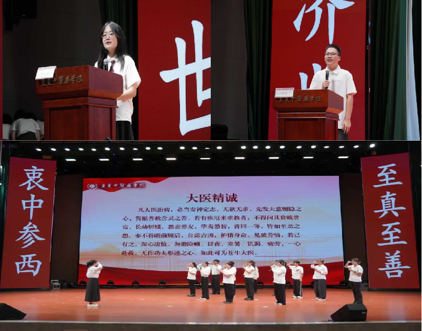 随后,在领誓老师吴永灿的带领下,2025级新生举起右拳,进行了“大医精诚”庄严宣誓。宣誓环节不仅让新生以初心立誓,更让家长见证孩子对医学使命的第一次郑重承诺,进一步坚定了新生“救死扶伤”的职业信念。