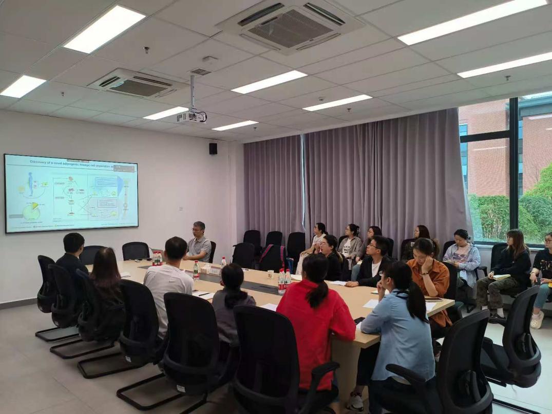 首先,中医药创新研究中心主任王建伟教授带领高焕庆副研究员参观了中心科研平台,详细介绍了中心实验室的建设进展及整体科研工作的开展情况。随后,高焕庆副研究员作了题为“靶向脂肪细胞治疗骨质疏松”的的专题学术报告,系统阐述了脂肪细胞在骨质疏松发生发展中的关键作用及其潜在机制,深入介绍了靶向脂肪细胞治疗骨质疏松的最新研究进展,同时分享了其在相关在相关科研探索过程中的宝贵经验与心得体会。