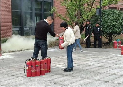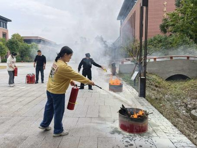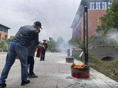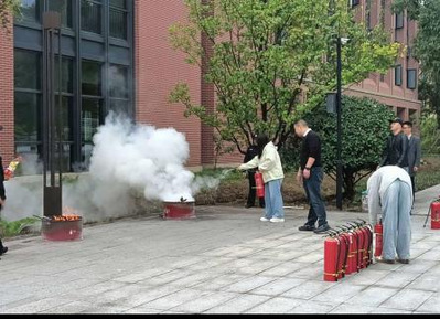 随后,刘东老师重点演示灭火器 “提、拔、握、压” 操作流程,强调操作时的安全距离与姿势规范。在实操互动环节,学院老师和同学们踊跃参与,在后勤保卫处刘东老师和李飞江老师指导下操作灭火器扑灭模拟火源,现场学习氛围浓厚,进一步夯实了消防安全实操基础。