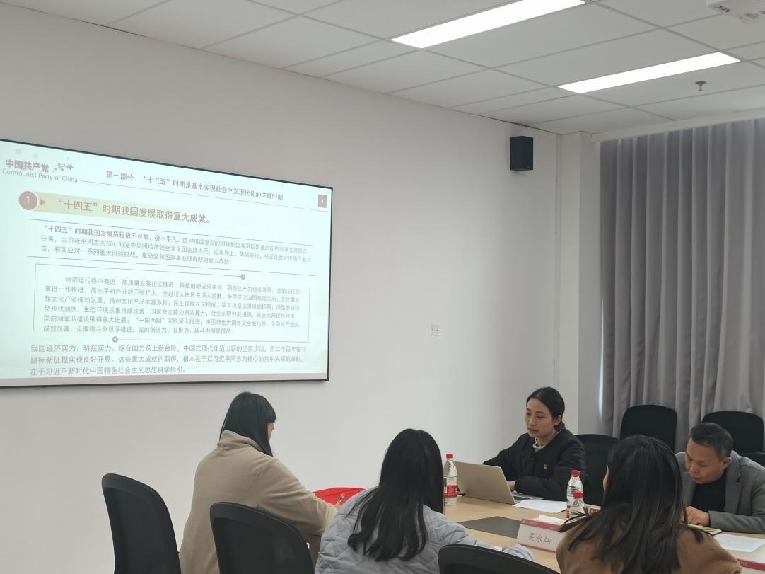 全体党员首先围绕《中共中央关于制定国民经济和社会发展第十五个五年规划的建议》专题开展理论学习。科研处朱华李处长以“守正创新-《习近平谈治国理政》第五卷的鲜明特点”为主题讲授党课,强调科研工作者要深刻把握“守正”与“创新”的辩证统一。中医药创新研究中心党支部书记郑佳同志以“党建引领科技创新,以新质生产力引领中医药现代化”为题开展党课。