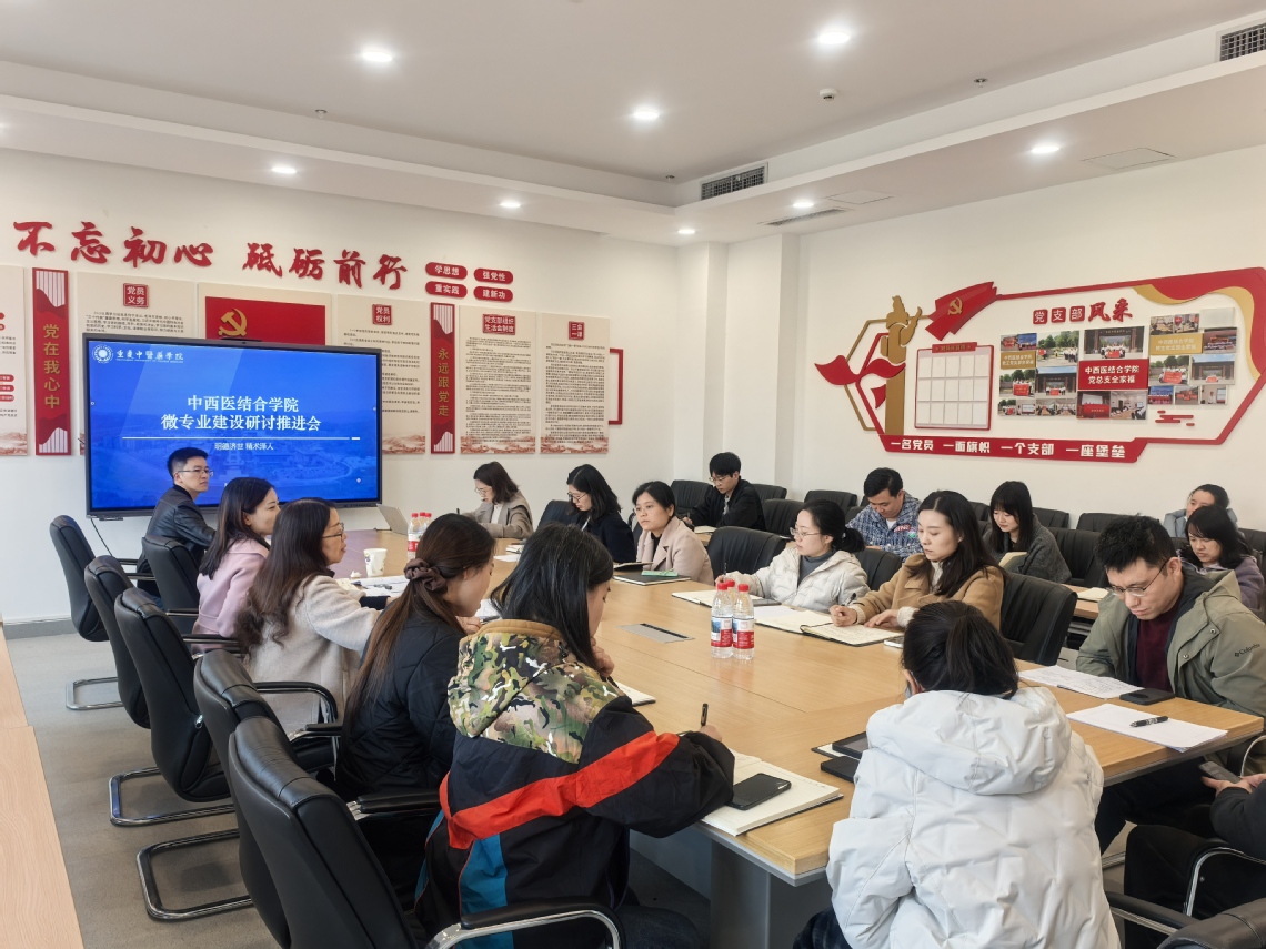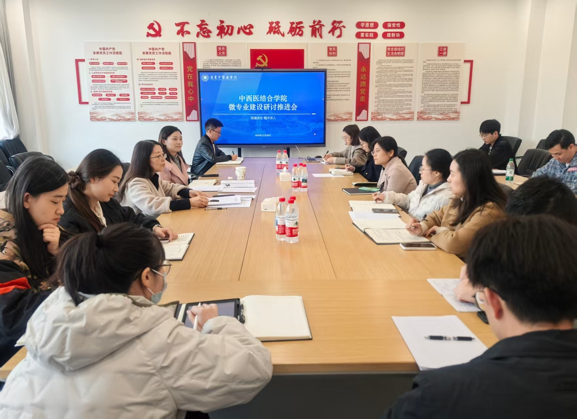 为扎实推进微专业建设工作,精准对接学校首批微专业申报要求,2025年11月28日下午,中西医结合学院在B1-206会议室召开微专业建设研讨推进会。会议由院长王建伟主持,学院党总支书记、副院长冯雅蕾及中西医结合学院教师参会。