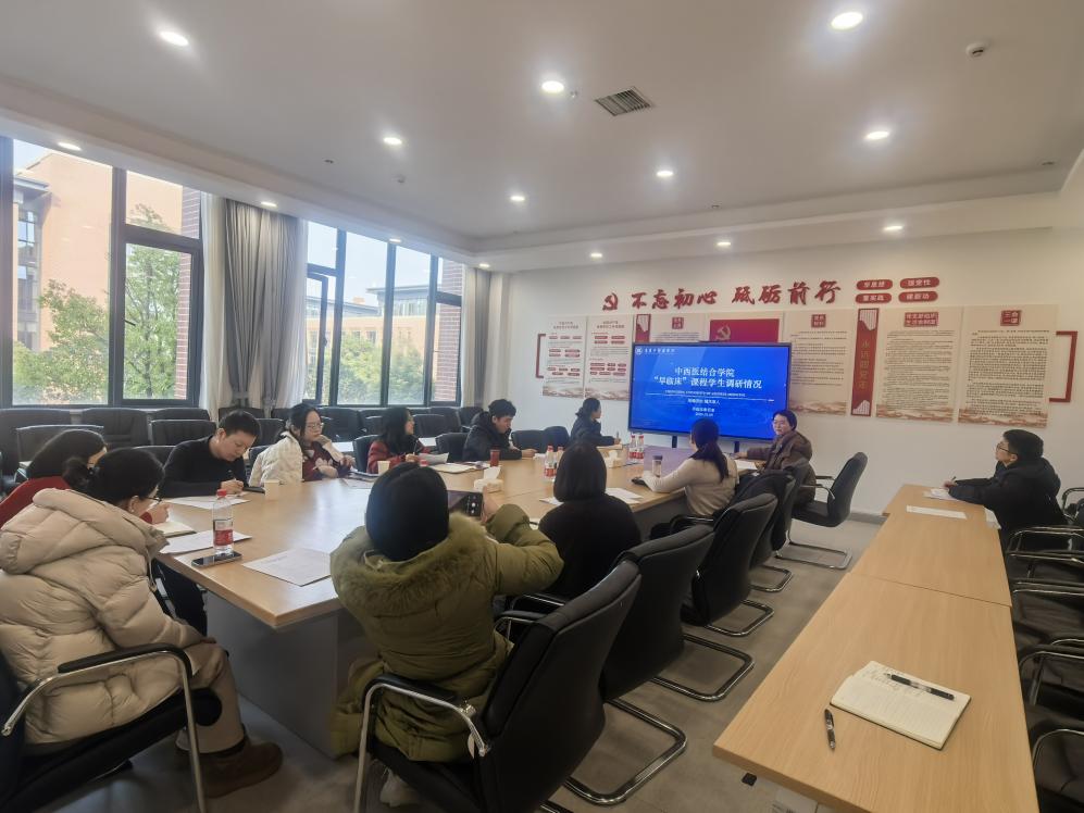 为优化《早期接触临床》课程教学质量,强化学生实践能力培养,2026年1月9日14:30,中西医结合学院在B1-206会议室召开《早期接触临床》课程论证会。会议由中西医结合学院院长王建伟指导、综合办公室副主任张紫琪主持。校院两级教学督导专家段恒教授,早临床教研室教研室秘书谭凯玥、李玲珑,专任教师代表向伟、郑佳、廖婧,附属医院教师代表及学院全体教务工作人员参会。
