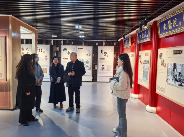 学术活动圆满结束后,王建伟院长、中西医结合学院综合办公室副主任严莲及学院骨干教师陪同两位教授实地走访了中医药创新研究中心科研平台。两位教授对我院科研平台建设的高效推进与显著成效给予高度评价,认为这为双方未来在科研协同创新、联合攻关及高层次人才培养等方面奠定了坚实基础。随后,一行人前往学校图书馆参观。在彭燕梅馆长的全程讲解下,两位教授深入了解了馆藏中医药珍稀古籍、特色文献资源及“中医药特色资源展示平台”的建设成果。期间,两位教授还与洪蕾教授进行了线上交流,围绕中医药经典活化利用、文化传承与国际传播等议题展开深入探讨,并提出了富有建设性的意见和建议。此外,他们认真查阅了校史资料与特色档案,对我校深厚的办学底蕴、鲜明的学科特色以及蓬勃的发展活力表示由衷赞赏。两位教授一致认为,我院构建的“研—藏—传”一体化中医药学术生态体系,理念先进、特色鲜明,具有良好的示范效应和推广价值。他们表示将积极协助整合优质资源,拓展合作网络,共同推动我校在中医药科研创新、文化传承与国际传播等方面的系统性提升,助力学校高质量发展。