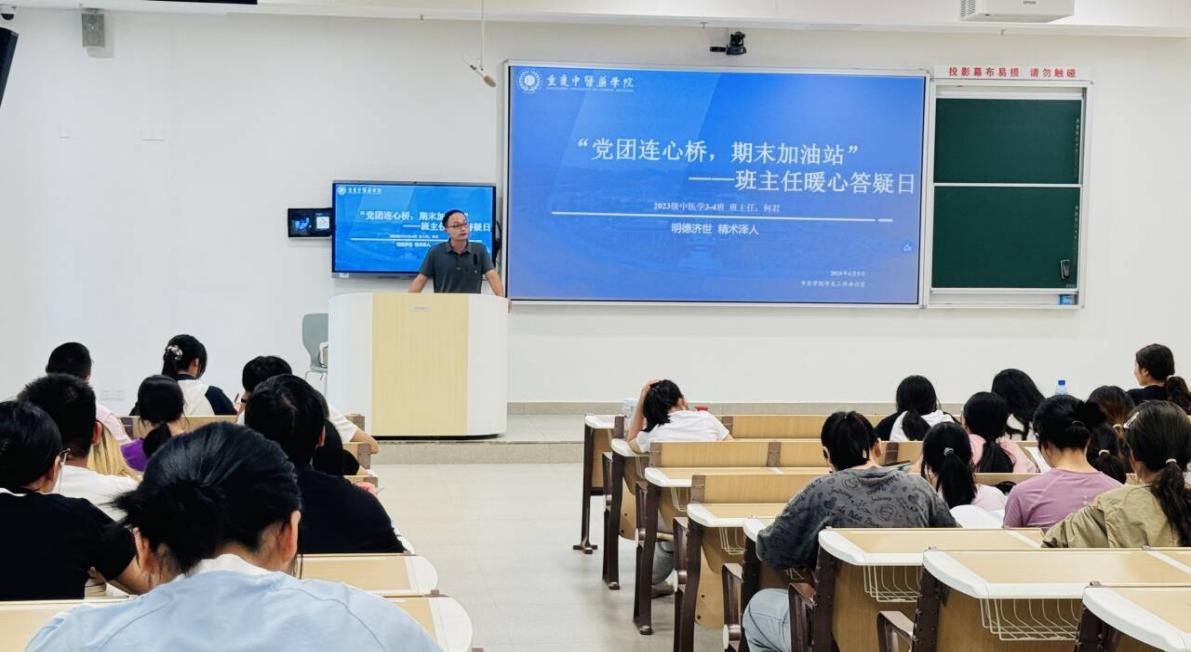 1.2025年6月10日,中医学院多部门联合开展“党团连心桥,期末加油站——班主任暖心答疑日”活动,旨在服务学生成长、加强学风建设。活动涵盖学习经验分享、答疑解惑、心理疏导等环节,班主任结合教学经验分享高效复习法,围绕《伤寒论选读》等核心科目梳理重难点,为学生提供个性化复习建议,同时关注学生心理状态,缓解备考压力。