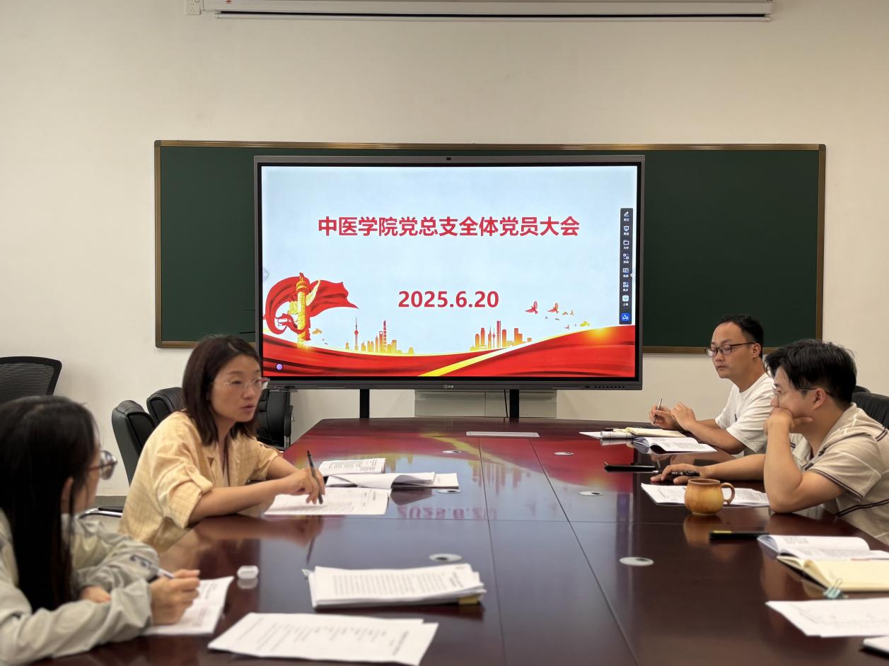 2. 2025年6月20日,中医学院党总支在B4-312会议室召开全体党员大会,旨在深入贯彻落实中央八项规定精神,扎实推进学院党建及意识形态工作。此次会议由党总支副书记姚玲主持,重庆中医药学院党委常委、副院长唐丽灵出席并发言。