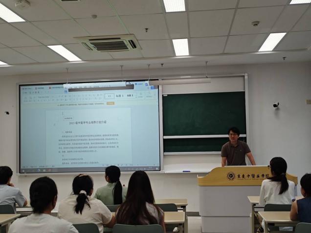 会议伊始,王明杰老师以 “明晰培养目标,夯实学业根基” 为主题,为新生系统解读了学校专升本阶段的培养方案。他不仅详细阐明了毕业条件与学位授予的具体要求,更重点聚焦 “3+2” 医学生培养模式的特色优势,深入对比了专科阶段与本科阶段在培养方向、知识深度及学习方法上的差异。针对本科阶段的学习重点,王明杰老师鼓励同学们树立明确的学业目标,主动构建系统化的知识体系,以严谨的态度 “筑牢中医知识防线”,为后续的专业实践与职业发展打下坚实基础。