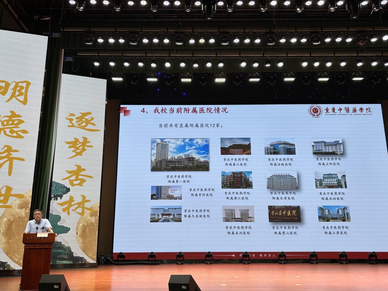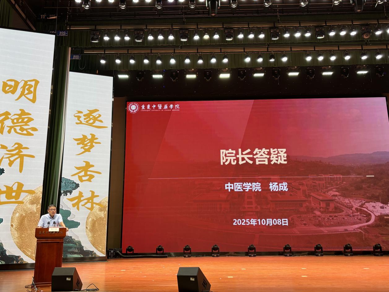 引人注目的院长答疑环节紧接着展开。针对新生及家长提出的 “培养方向”“就业方向”“未来发展” 等困惑,杨成副院长(主持工作)结合学院办学特色与中医行业趋势,逐一专业解答。谈及培养方向,他强调:“我们践行‘早临床、多临床’理念,以《黄帝内经》等经典打基础,配备‘医学+科研+成长’三类导师,还有全国名中医刘华宝等名医的传承工作室指导实操。” 提到就业,他介绍学院与市中医院等12家直属附属医院合作,就业前景乐观。展望未来,他表示将结合重庆 “五大行动推动中医药融合创新发展”,对接 “渝十味” 等产业需求,发展前景广阔。专业又接地气的解答,缓解了新生及家长的疑虑,让大家对未来充满信心。