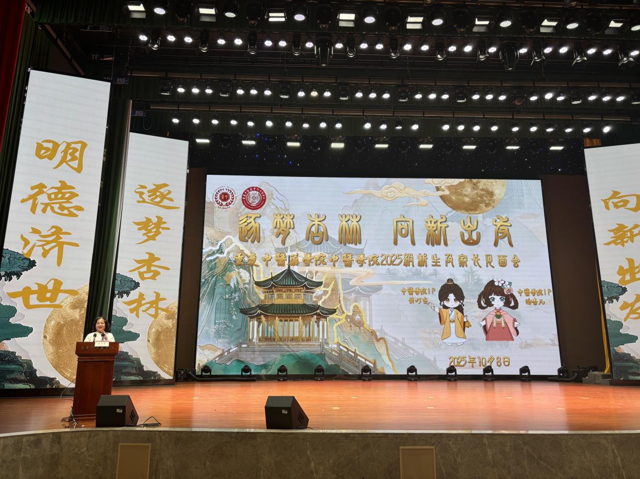 下午2时许,25级新生见面会在李艳副院长主持下温情启幕。学校会议中心内,学院全体教职工与新生及家长齐聚,共同见证这一时刻。学院党总支副书记姚玲率先致辞,向新生表示热烈欢迎,她强调中医药是中华优秀传统文化的瑰宝,希望同学们以敬畏之心待专业,以传承之志做学问,在中医学院成长为有温度、有担当的中医人。真挚话语满含期许,赢得阵阵掌声。