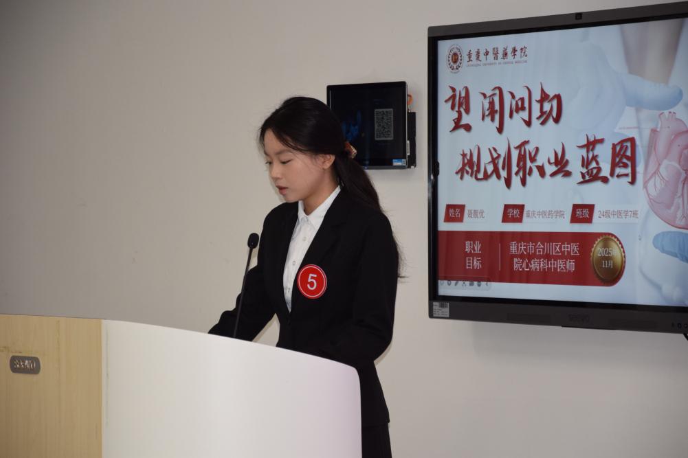 为落实高校毕业生就业工作部署,强化学生生涯教育、明晰职业方向,提升就业竞争力。2025年11月20日,中医学院2025年第三届大学生职业规划大赛于E1-104如期展开。中医学院科教科科长王明杰、学生工作办公室副主任李霜、2025级班主任钟晓靓、2024级辅导员黄江云、2025级辅导员蒋渝受邀担任评委老师。