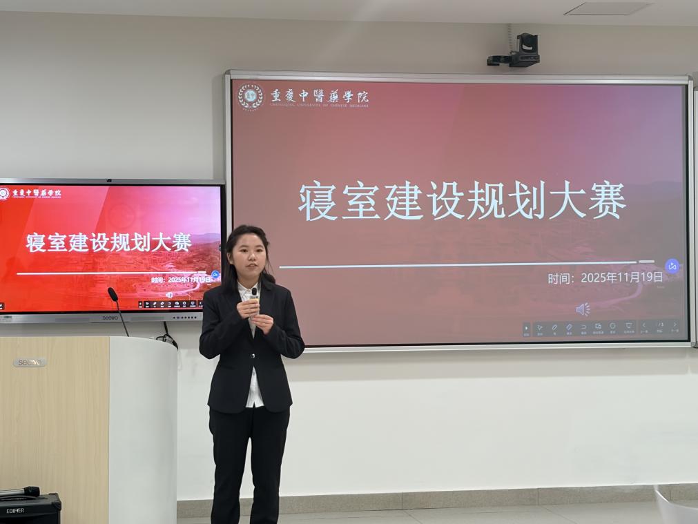 2025年11月19日,重庆中医药学院中医学院第三届寝室规划大赛在E3-203教室顺利举行。本次大赛特邀护理学院学生工作办公室副主任张成贤老师、中医学院辅导员蒋渝老师、卢佳毅老师担任评委。活动吸引了来自学院2023至2025级的25个寝室积极参与,80余名师生到场观摩。经过激烈角逐,最终评选出一等奖1名、二等奖2名、三等奖3名。本次活动不仅激发了同学们对寝室环境的规划热情,更有力促进了和谐融洽、积极健康的寝室文化建设。