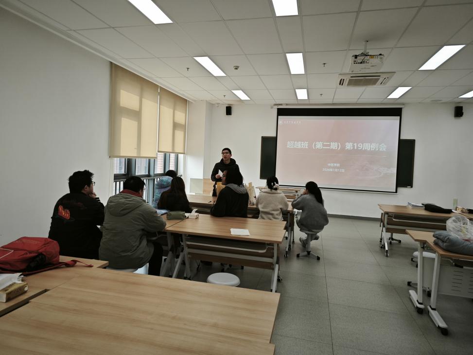 为系统复盘本学期超越班育人工作成效,凝聚学员期末奋进共识,2026年1月12日中午,中医学院超越班(第二期)第19周例会暨学期期末总结会在中医学院B4-302顺利召开。本次会议由超越班班主任蒋渝主持,党总支副书记姚玲出席会议并作总结发言。