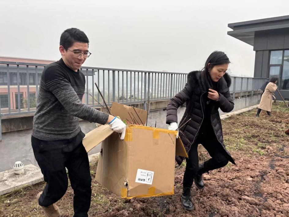 活动现场,在学院党总支副书记姚玲、副院长李艳的带领下,学院教职工齐聚4楼种植区,手持锄头、铲子等工具俯身播撒,细致翻土,每一步操作都饱含期许,用双手为学院添绿增彩。教职工们在劳动中体悟耕耘之美,期盼春日里种子破土,与学院育人事业同生长、共奋进,让办实事的初心随绿意蔓延。