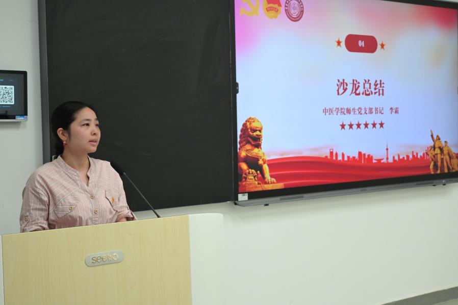 活动最后,中医学院师生党支部书记李霜同志对本次沙龙进行了总结。她强调,作为学生干部和入党积极分子,大家的站位与普通同学不同,应时刻以更高的标准要求自己。李老师提出四点希望: