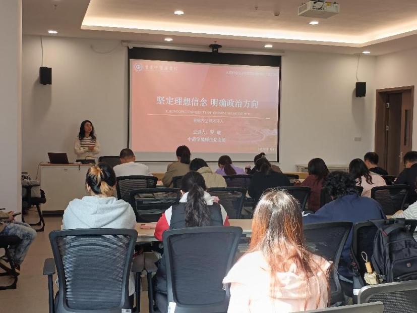 为深入学习贯彻党的二十大四中全会精神,准确把握“十五五”规划的战略部署与时代要求,2025年11月4日,中药学院师生党支部在D2-215成功举办了“紧跟时代步伐,深化理论学习”主题党日活动暨入党积极分子与发展对象第二期培训会。会议由支部书记杨炀同志主持,全体党员、发展对象及入党积极分子参加。