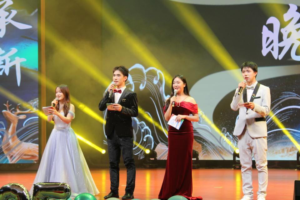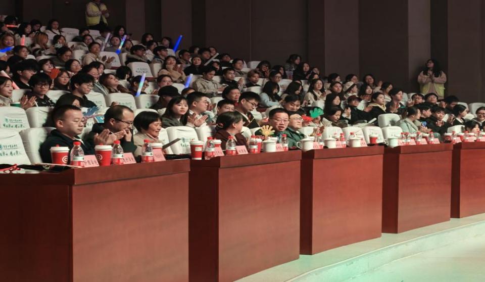 一曲《年轮》悠扬婉转,一圈年轮藏一段故事,一曲悠扬道尽成长模样,让观众在旋律中感受岁月的缱绻与绵长;舞蹈《Diamond》则画风一转,以利落舞姿与强劲节奏打破温柔氛围,演绎出青春的野心与锋芒,每一个动作都如钻石般夺目;歌曲《像我这样的朋友》唱出挚友相伴的珍贵,道尽青春路上志同道合的温暖。晚会的终章由一抹意料之外的亮色点燃——平日里谆谆教诲的辅导员老师们组成“小辅队”,换上活力装束集体登台,带来由经典歌曲《青苹果乐园》改编的《中药学院乐园》,用激情的歌声和动感的舞蹈瞬间引爆全场热情。