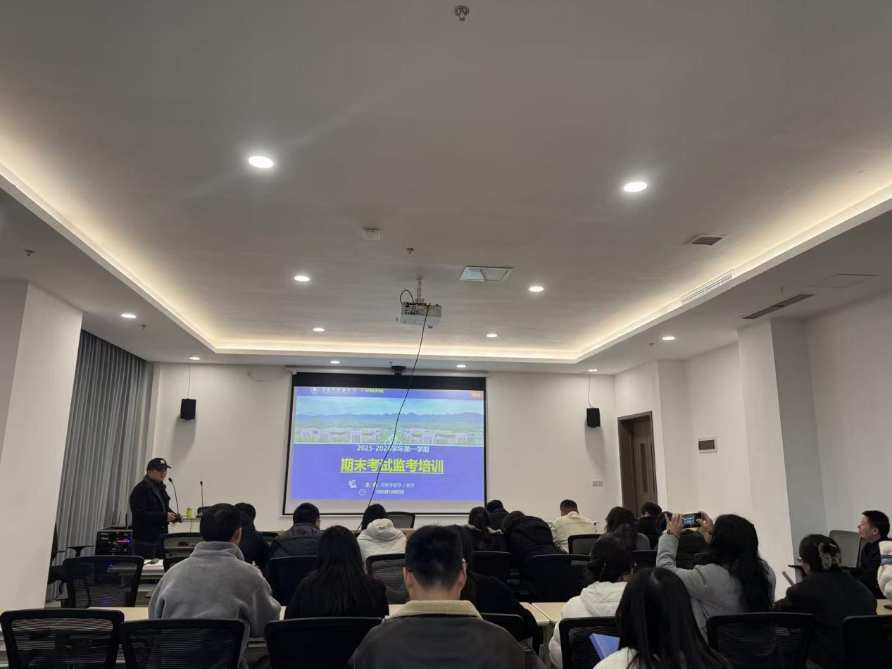 培训会上,王刚教授围绕学校考试管理相关规章制度、监考工作具体操作流程、考务注意事项、应急情况处置等核心内容展开详细讲解。他结合多年教学管理与监考工作经验,通过典型案例分析,深入剖析了监考过程中可能出现的各类问题及应对方法,强调了监考工作的严肃性、重要性和责任感,引导全体监考人员准确把握监考规范,筑牢考试纪律防线。