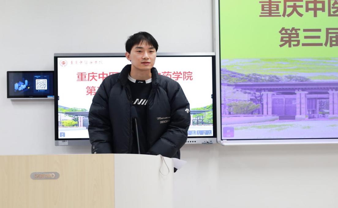 决赛现场,选手们立足中药学、中药制药等四大核心专业,结合中医药行业发展趋势,从自我认知、职业定位等方面系统阐述规划,涵盖临床应用、制剂研发、资源保护等多元领域。2024级中药学专业王雨珊以“做一剂守护健康的良药”为题,规划从药房实践到制剂研发的职业路径;2023级制药工程专业任星宇聚焦“中药智能制造”,提出数字化优化生产工艺的目标。选手们的展示逻辑清晰、亮点突出,赢得阵阵掌声。