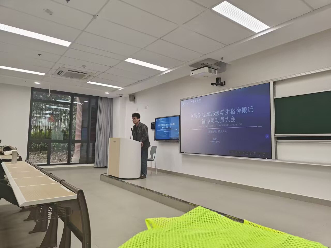 3月20日下午5:30,宿舍搬迁动员大会在E1-101举行。辅导员王鸿飞老师主持会议,郝欣老师共同出席,详细讲解搬迁流程、人员分工及注意事项。现场气氛热烈,同学们认真记录,为次日搬迁做好充分准备。
