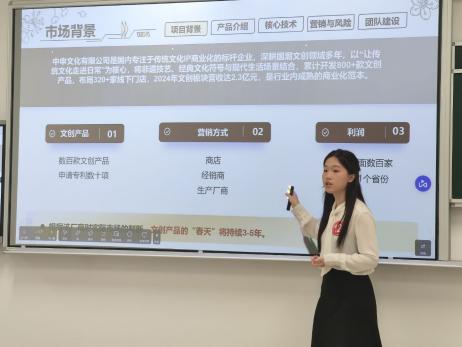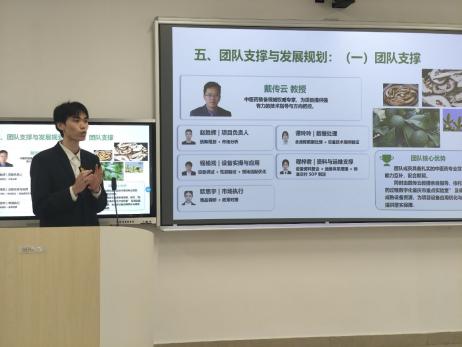 在比赛现场,选手们通过精美的PPT展示、详实的数据分析和清晰的逻辑阐述,将复杂的科研课题变得生动易懂,从“药瞳·智考”AI学习助手的智慧赋能,到“渝枇清颜”文创产品的巧思呈现,从“相变控温”膏贴研发的实践落地,到“点柏成金”振兴乡村的不懈努力等等,每一个项目都彰显着中药学子扎实的专业功底与勇于探索的创新精神,让传统中医药文化在青春视角下焕发新彩。